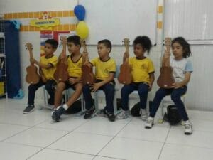 Na Educação Infantil são trabalhadas: Linguagem , Matemática, Estudos da Natureza e Sociedade, Inglês, Educação Musical.